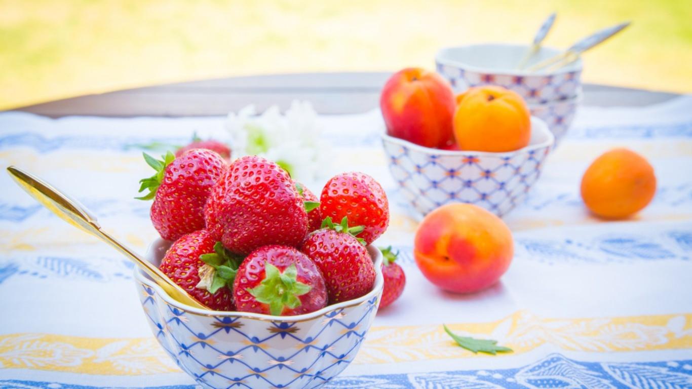 Wallpaper Strawberries and apricots for dessert