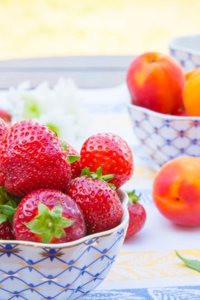 Wallpaper Strawberries and apricots for dessert
