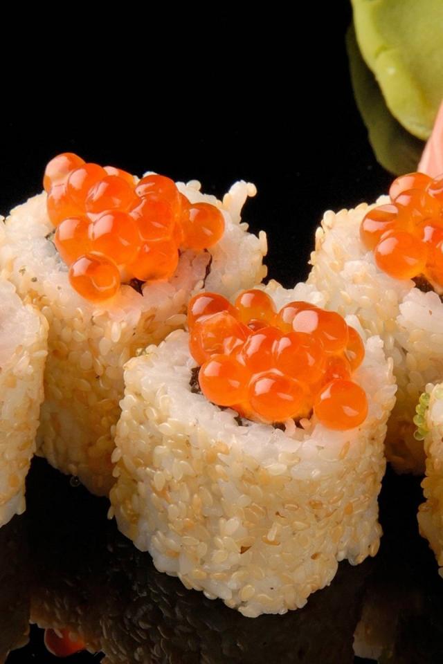 Wallpaper Sushi rice with red caviar