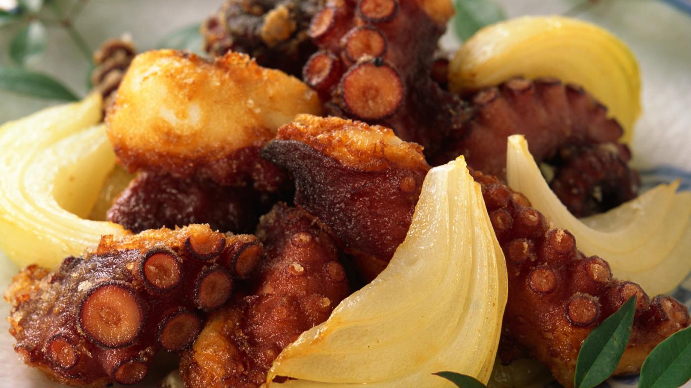 » Wallpaper Fried octopus with potatoes