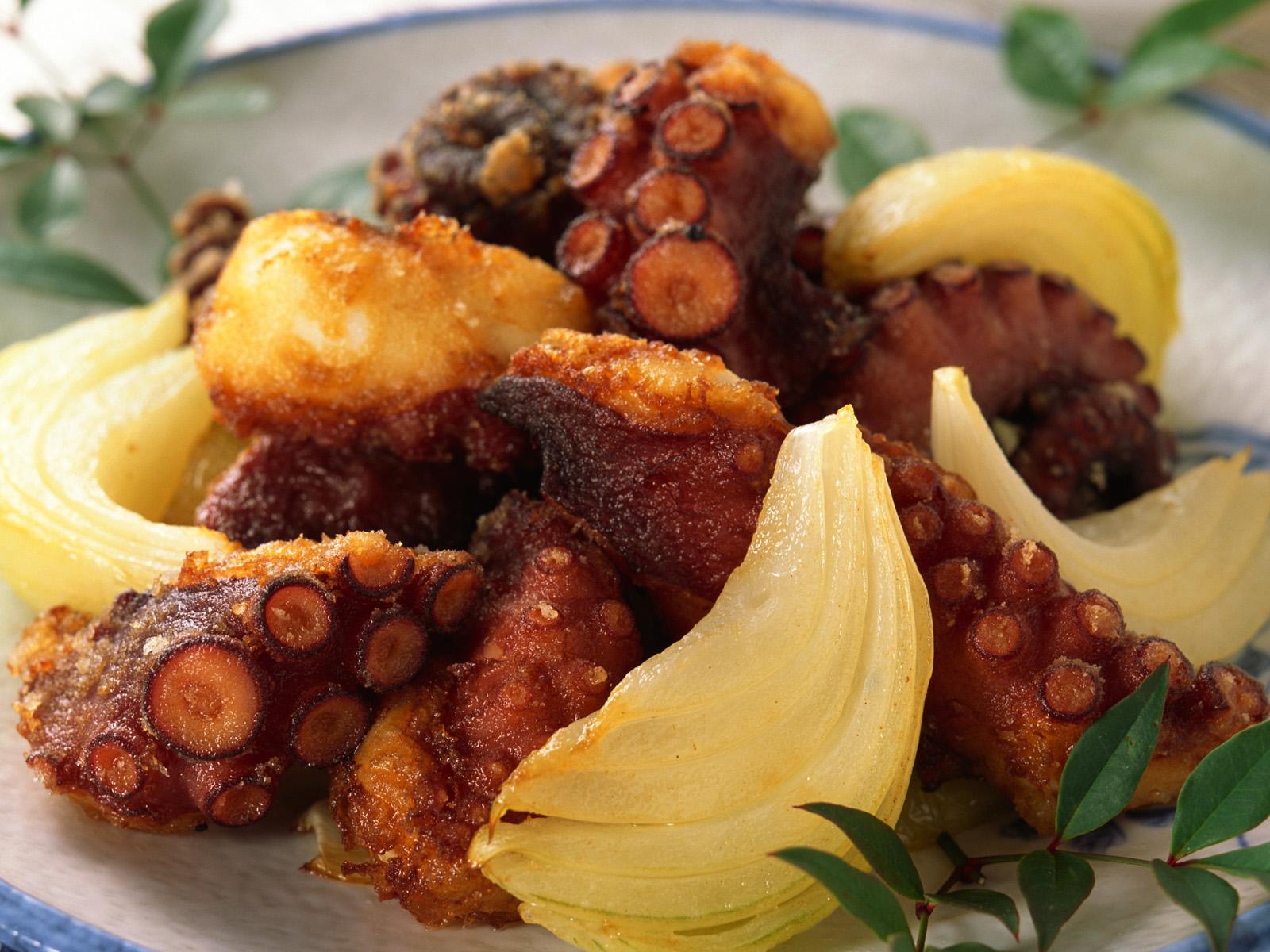 » Wallpaper Fried octopus with potatoes