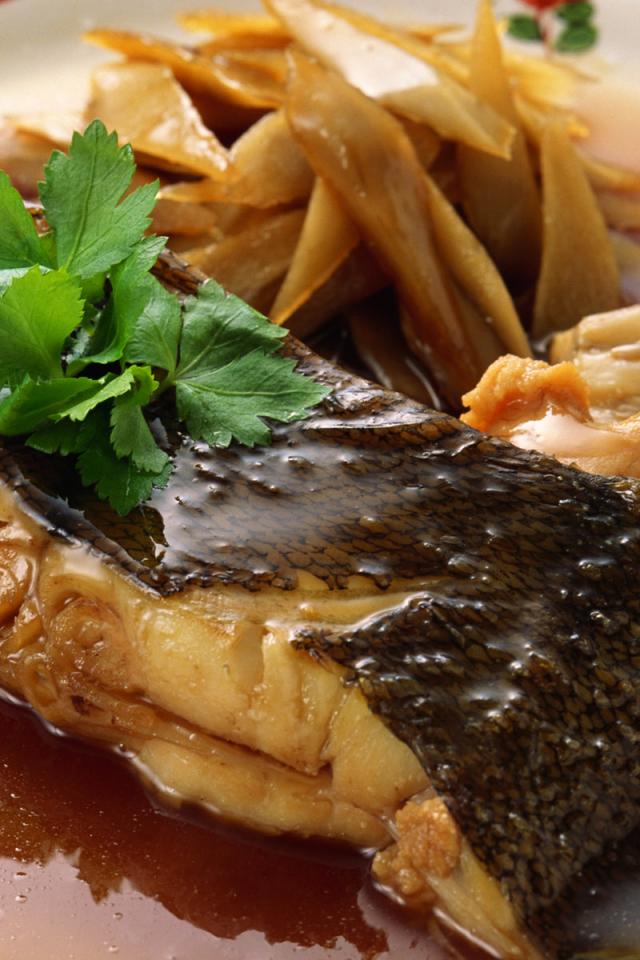 Wallpaper Fish, potatoes mushrooms