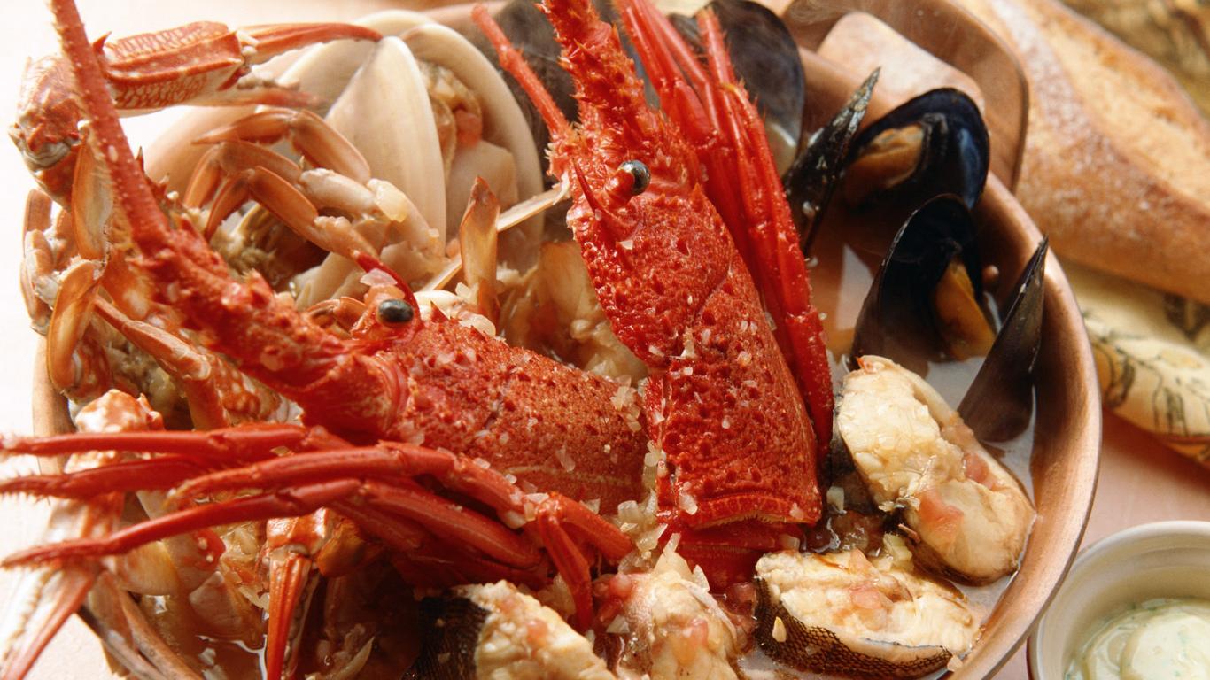 Wallpaper Shrimp squid oysters
