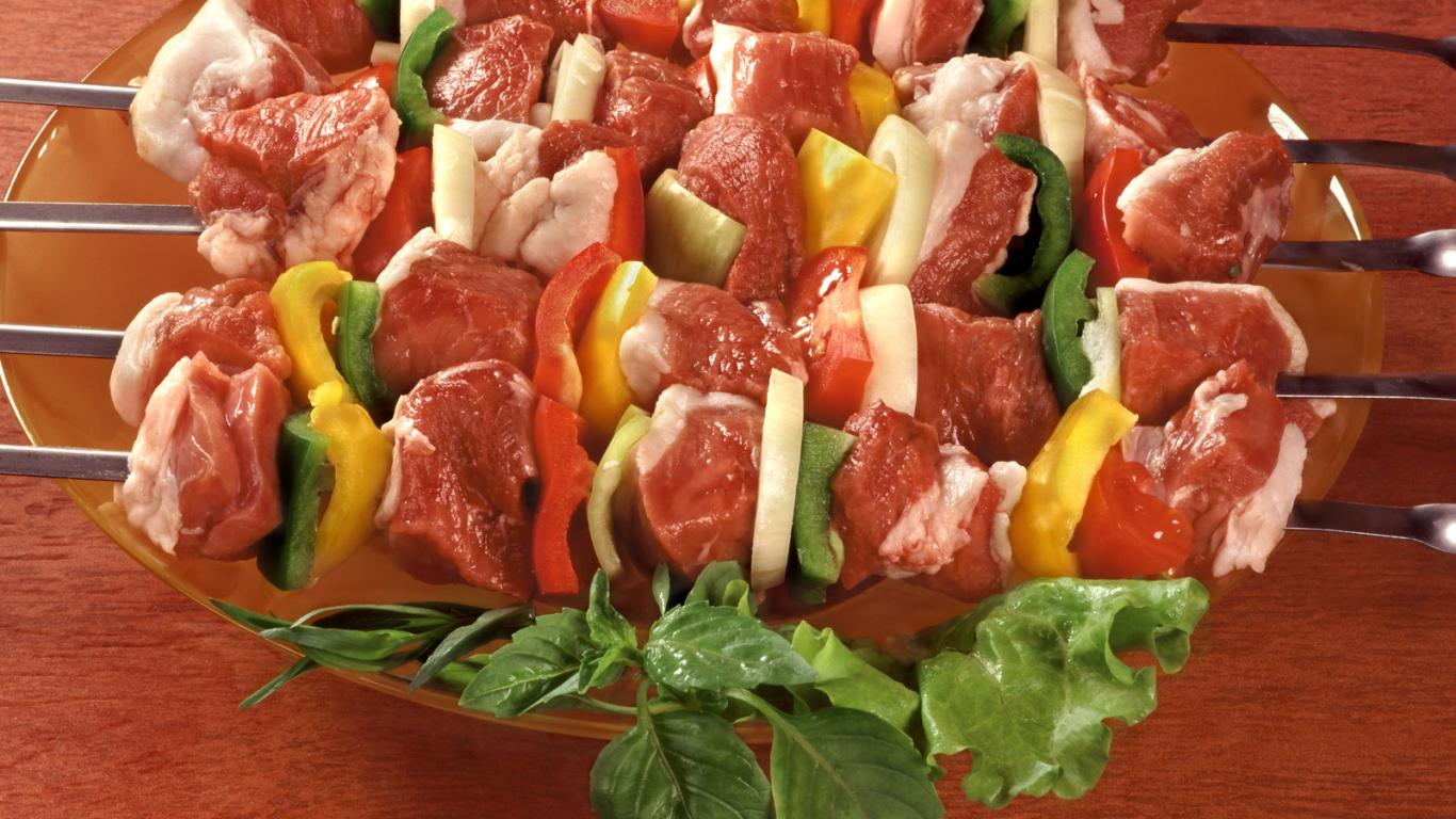 Wallpaper Dish with barbecue skewers