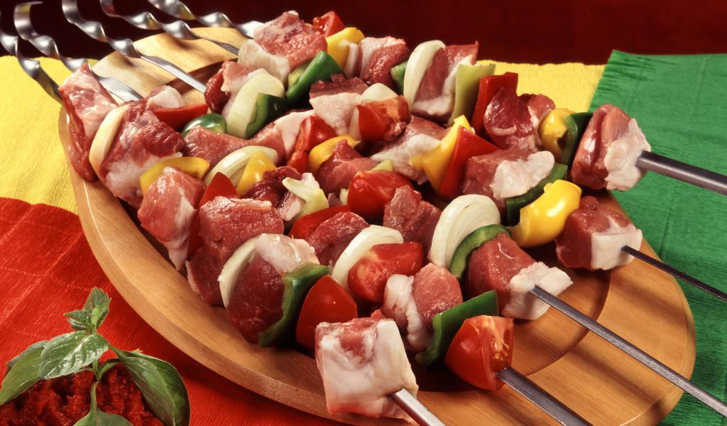 Wallpaper Dish with barbecue skewers