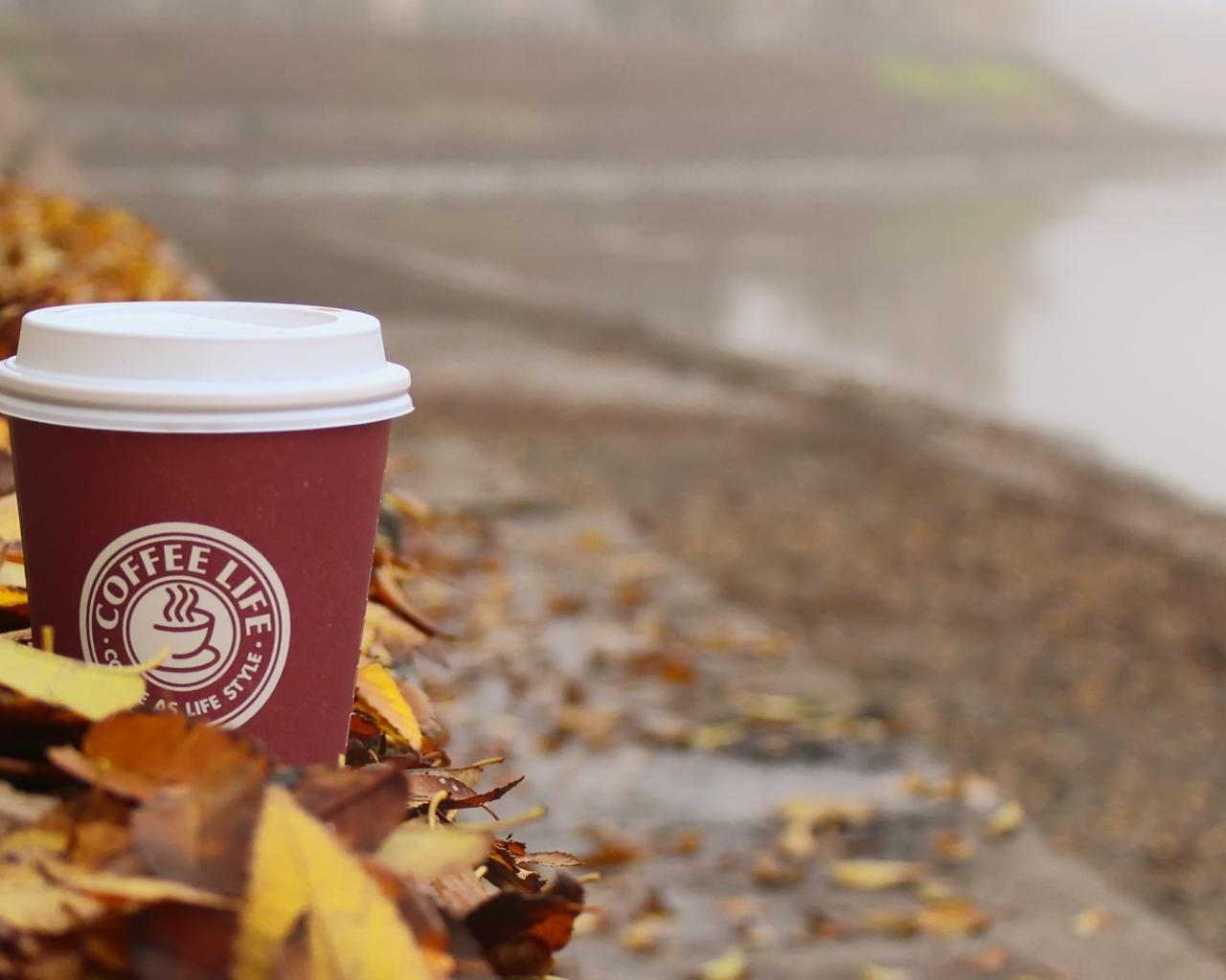 Wallpaper A glass of coffee from Starbucks among leaves