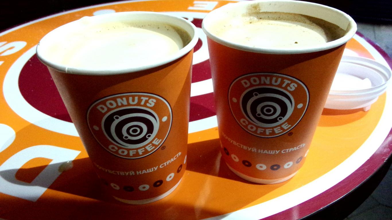 Wallpaper Two cups of coffee on a tray in cafe
