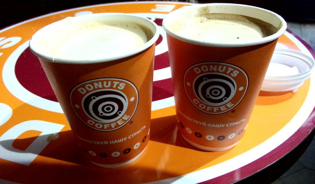 Wallpaper Two cups of coffee on a tray in cafe