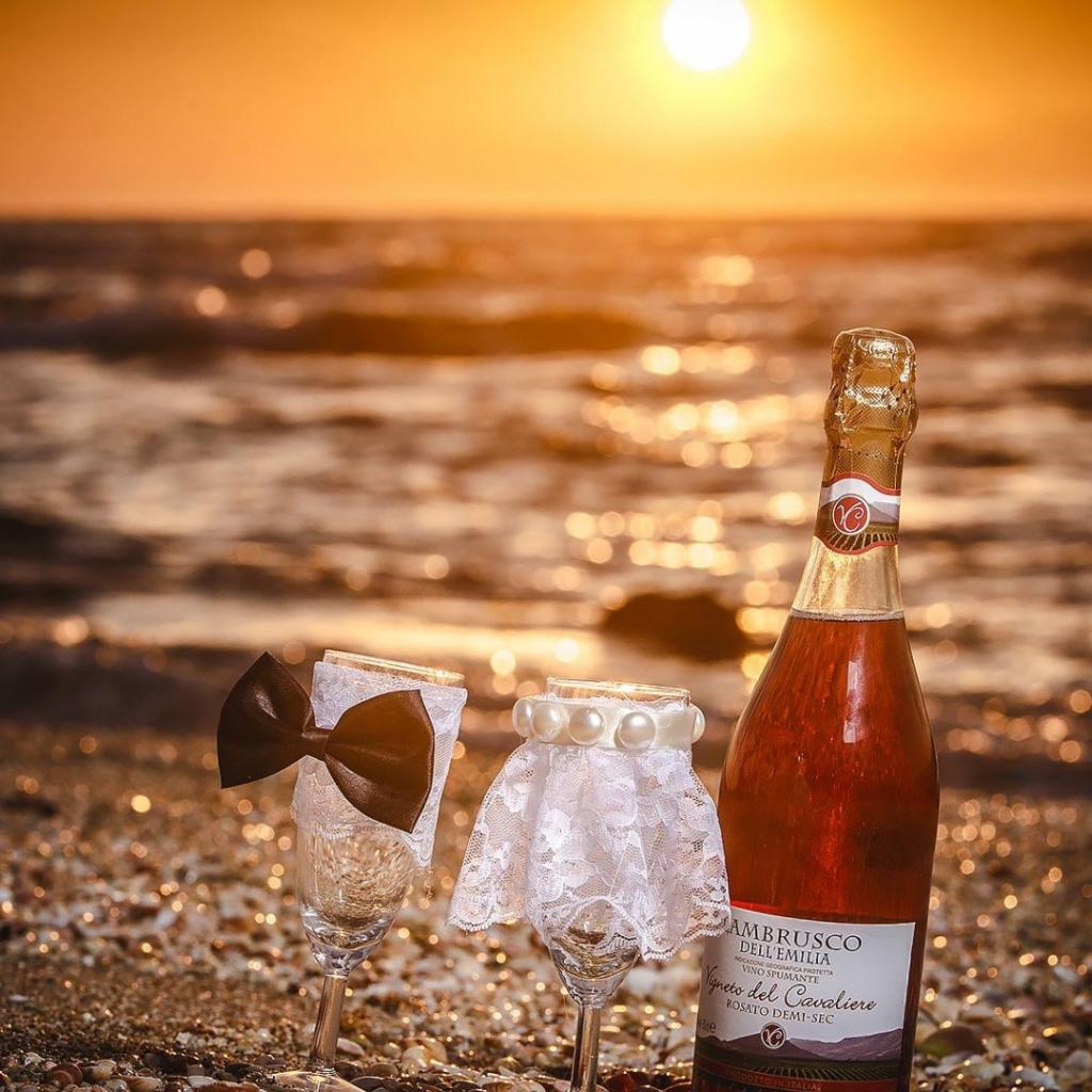 Wallpaper Wine bottle and a pair of glasses on the beach