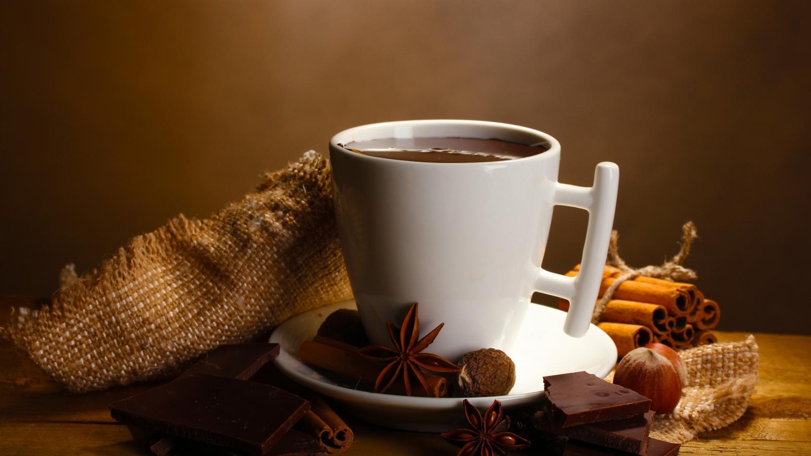 Wallpaper Pieces of chocolate with coffee