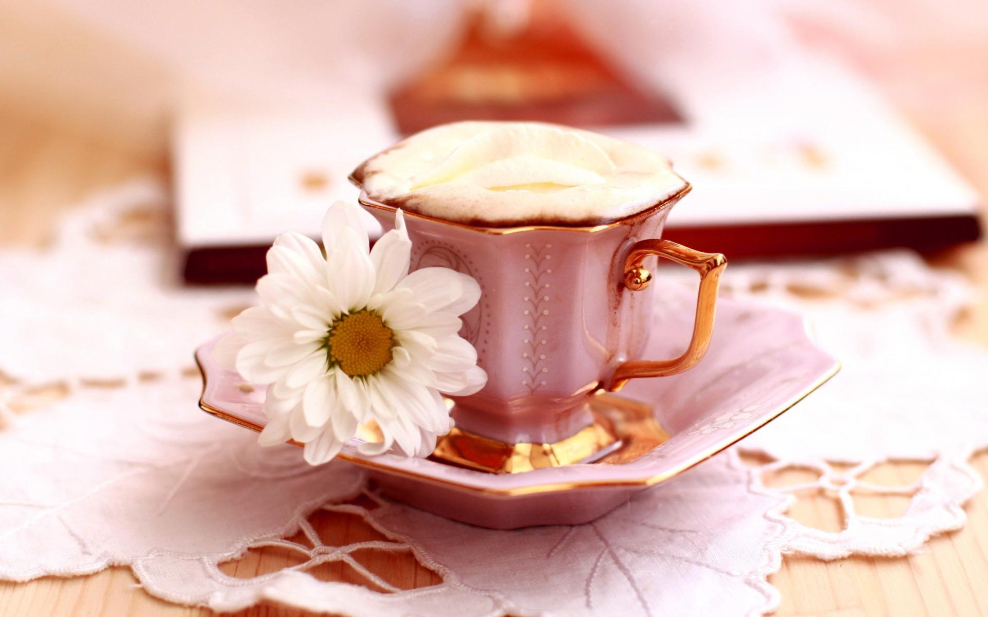 Wallpaper Coffee with crema and daisy on a saucer