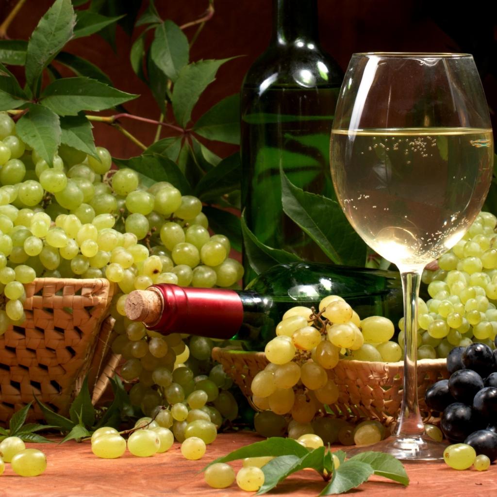 Wallpaper White wine and bunches of grapes