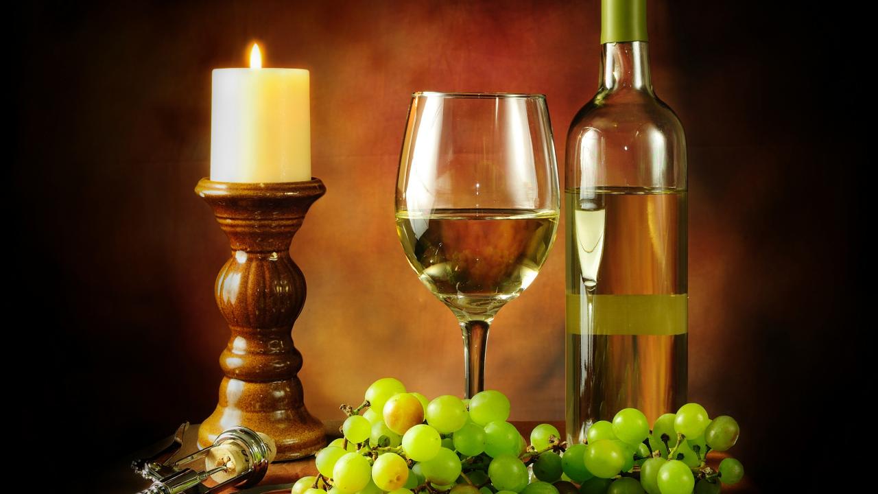 Wallpaper Candle and white wine