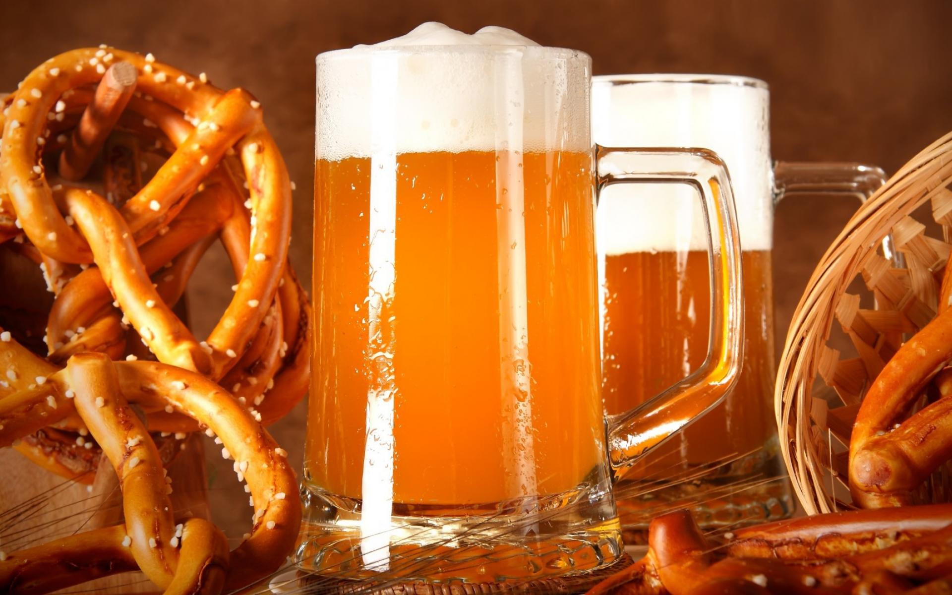 Wallpaper Beer with pretzels