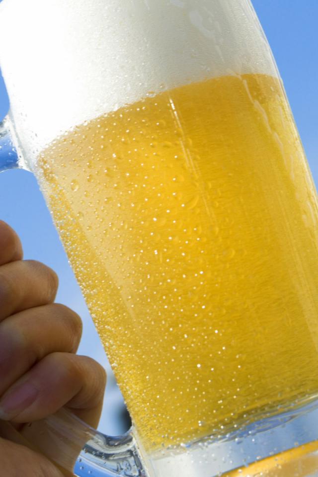 Wallpaper Glass of beer among the mountain caps from beer bottles