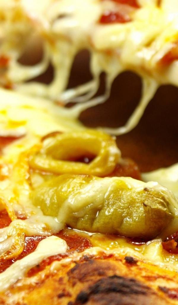 Wallpaper Pizza with cheese and green olives