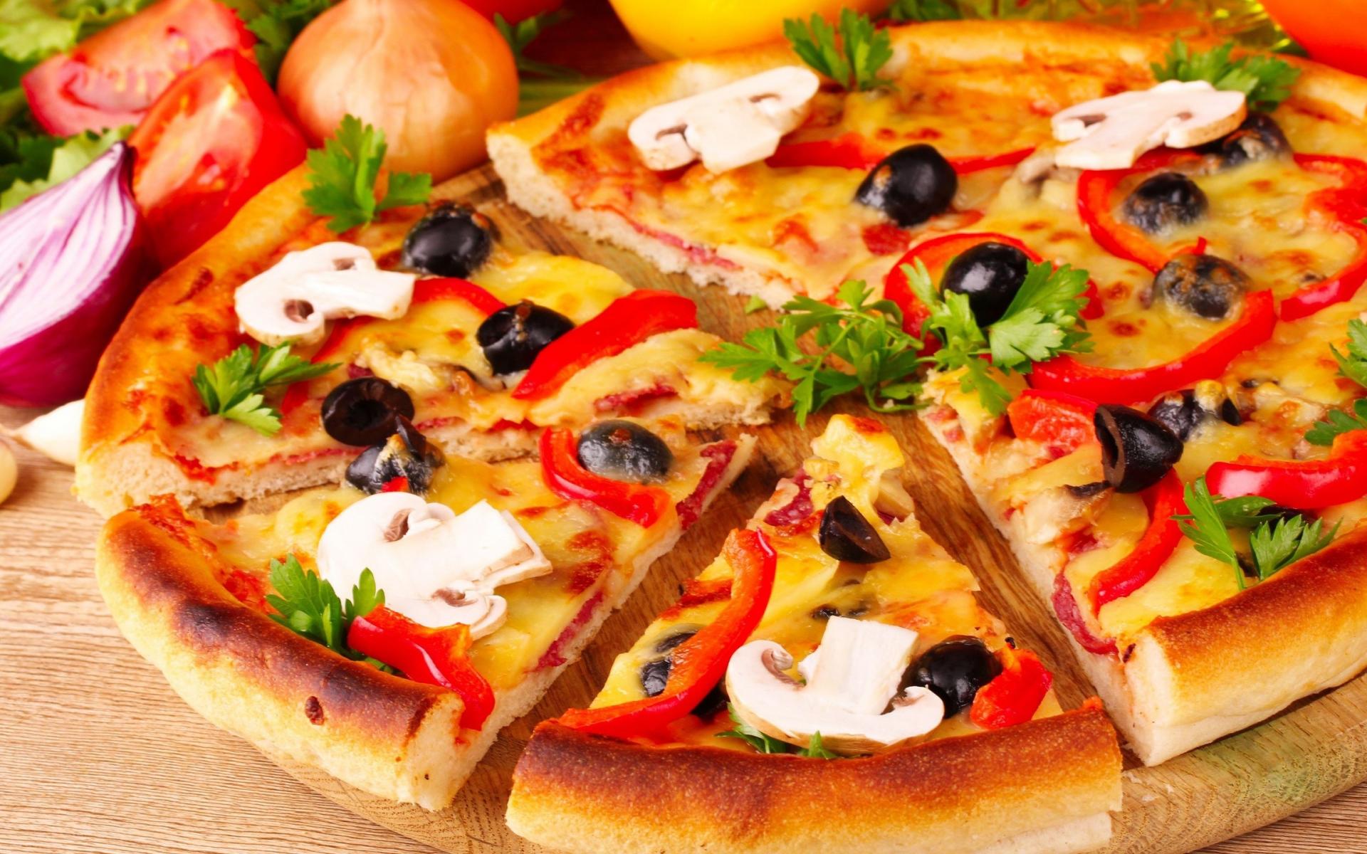 Wallpaper Pizza with mushrooms and peppers