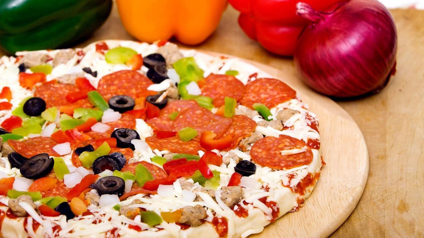 Wallpaper Pizza with a salami