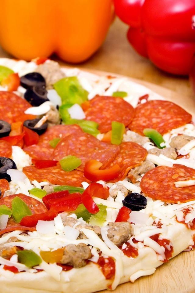 Wallpaper Pizza with a salami