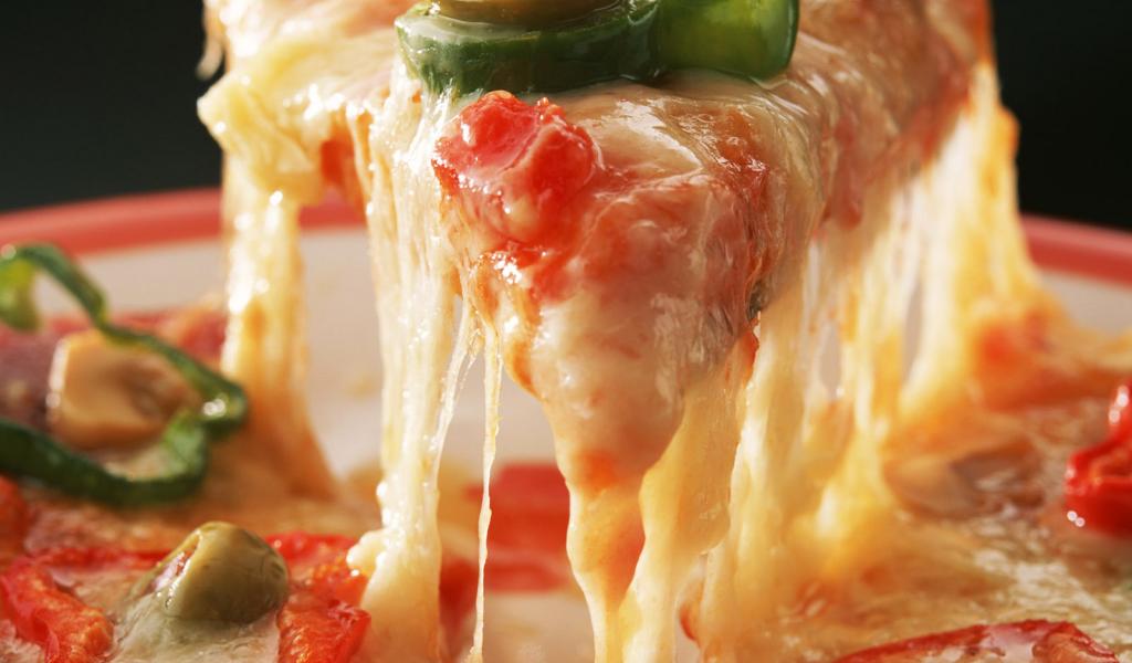 Wallpaper Pizza with cheese and green olives