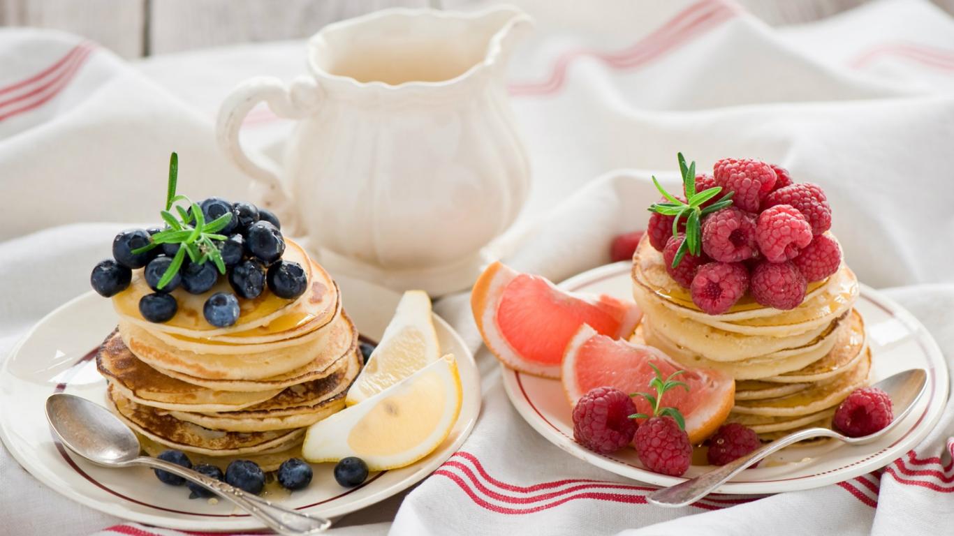 Wallpaper Delicious pancakes with raspberries and blueberries