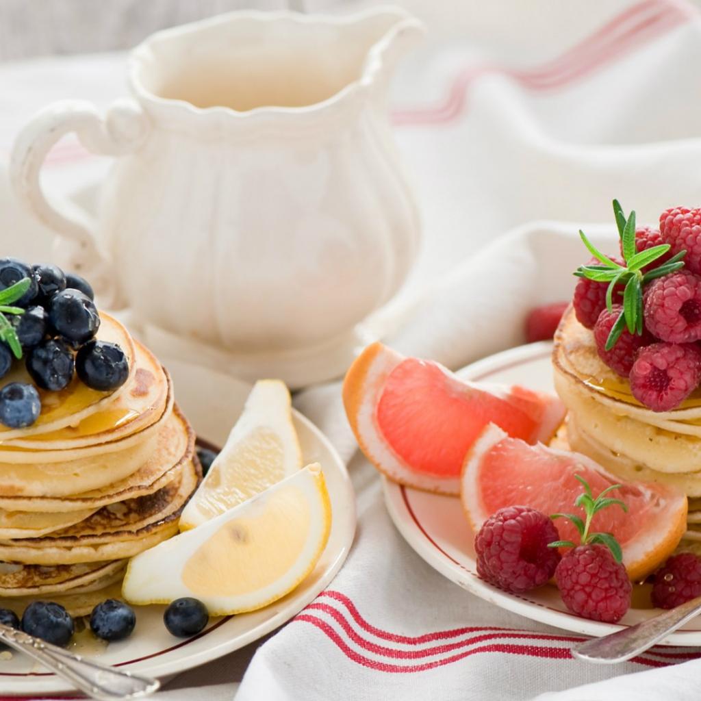 Wallpaper Delicious pancakes with raspberries and blueberries