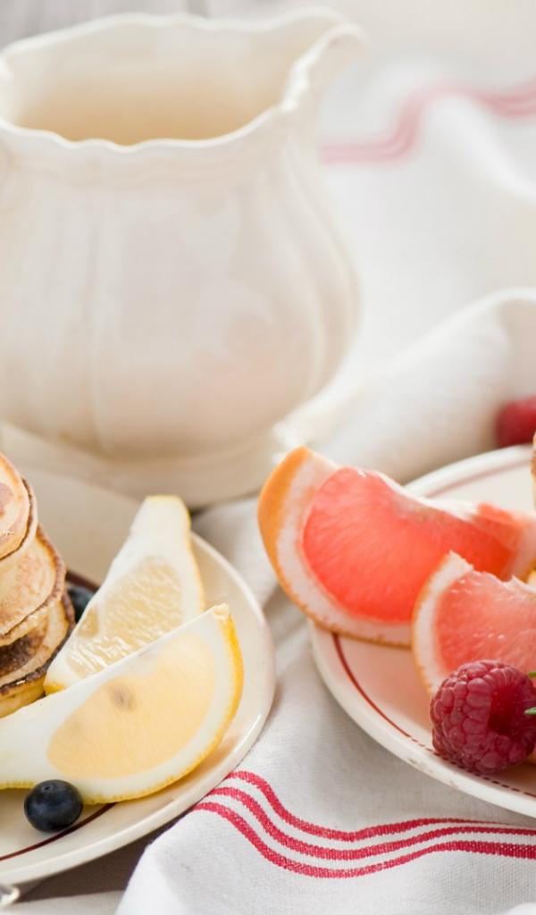 Wallpaper Delicious pancakes with raspberries and blueberries