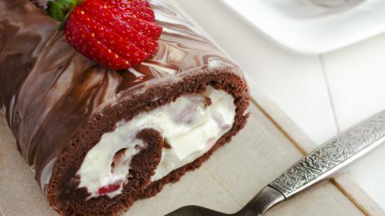 Wallpaper Chocolate roulade with strawberries