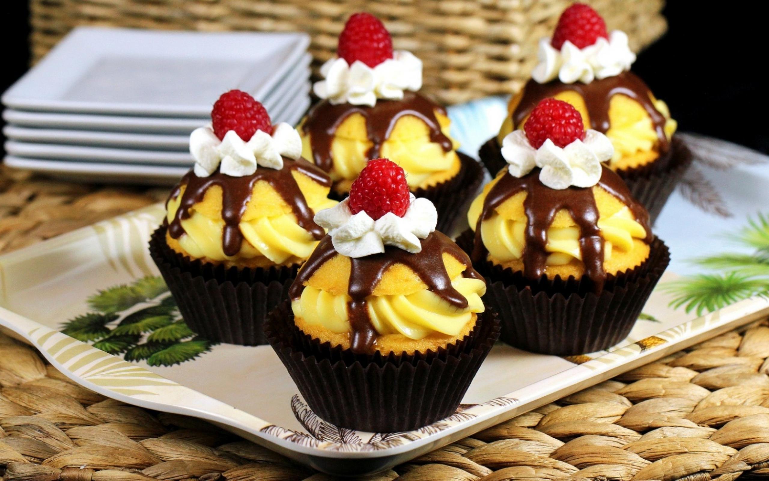 Wallpaper Cupcakes with raspberries