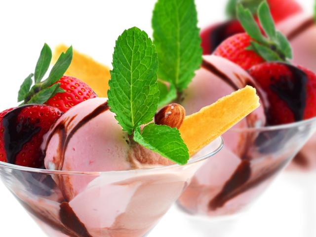 Wallpaper Dessert, Ice cream, Strawberries