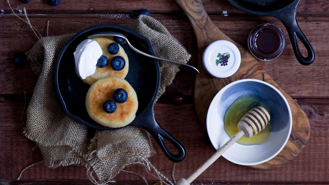 Wallpaper Pancakes with blueberries and honey