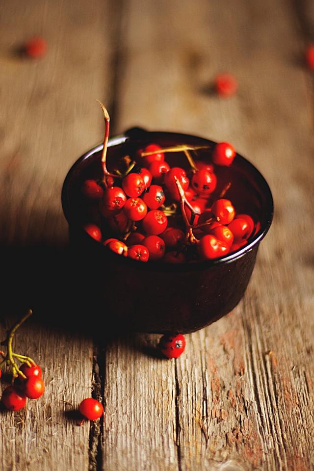 Wallpaper Rowan berries in a black piala
