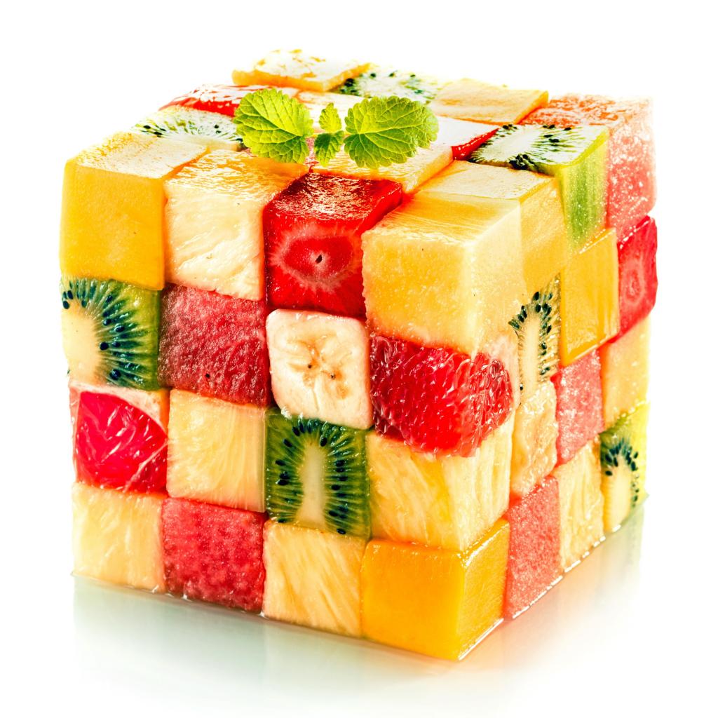 Wallpaper Cube of chopped pieces of fruit