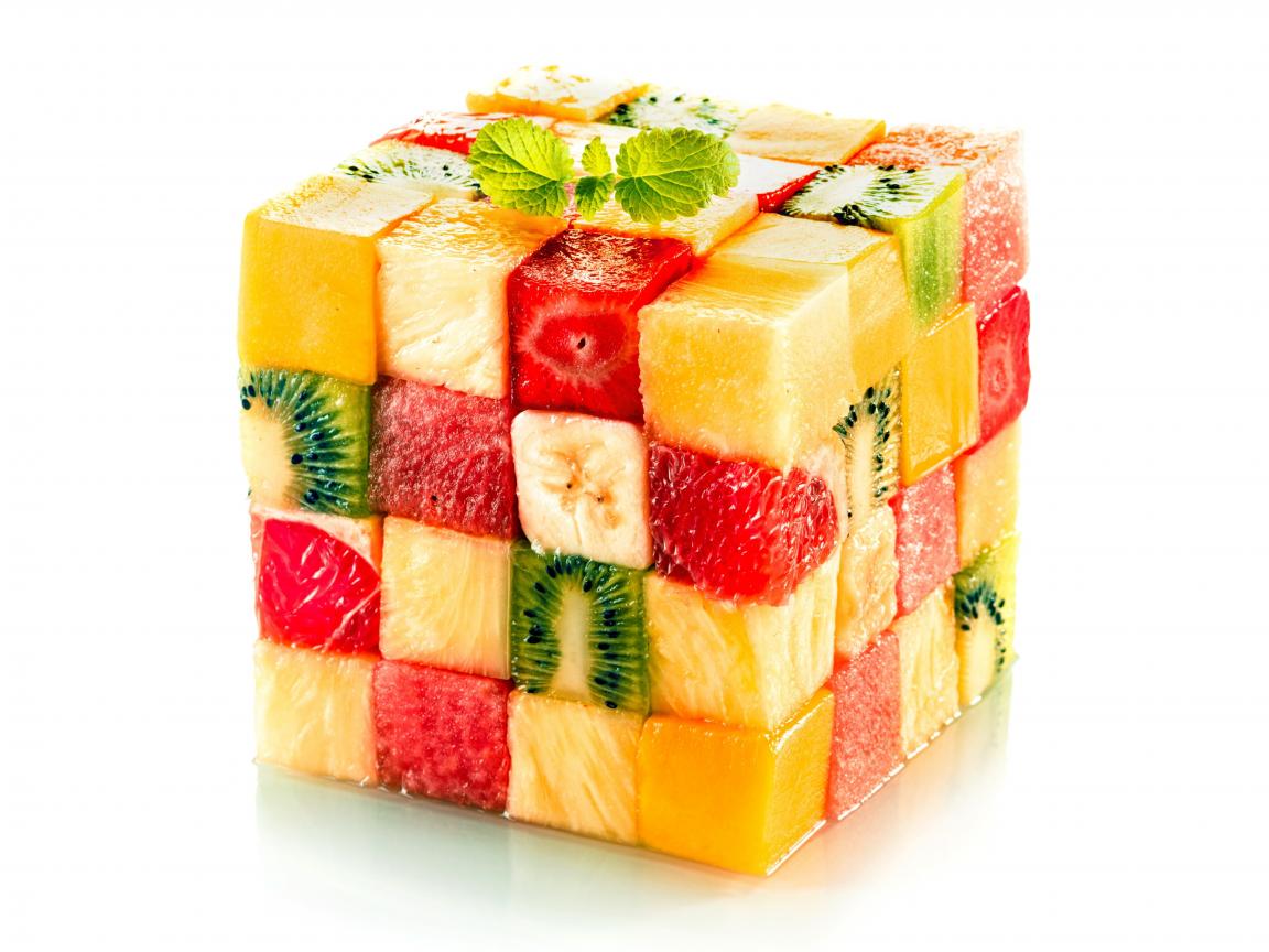 Wallpaper Cube of chopped pieces of fruit