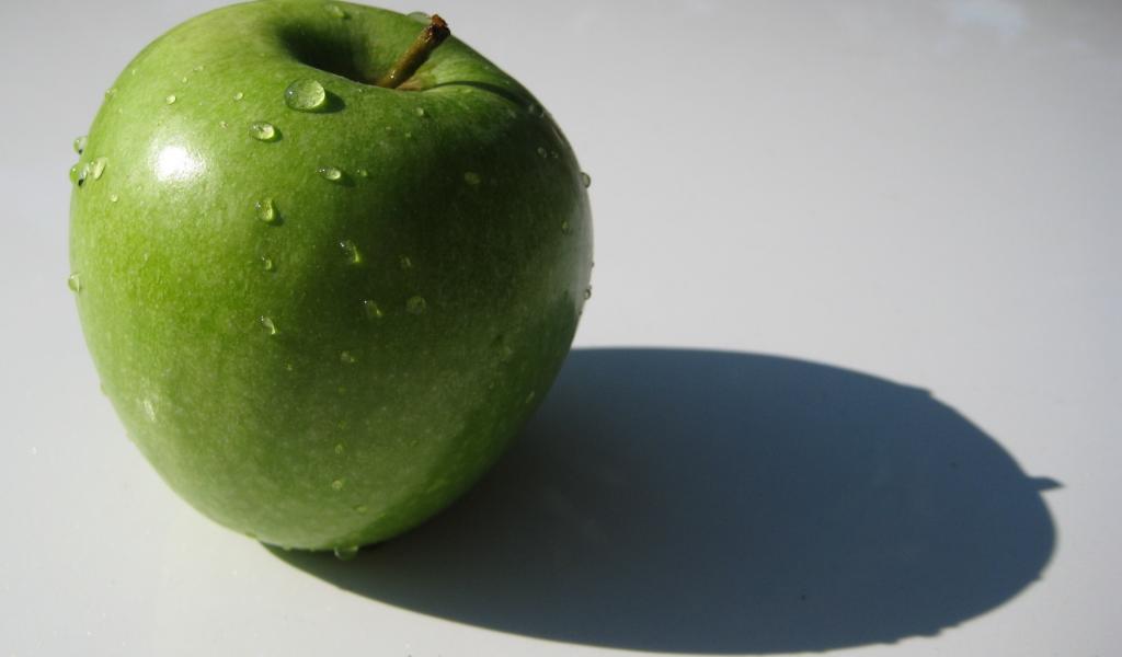 Wallpaper Green apple on the white surface