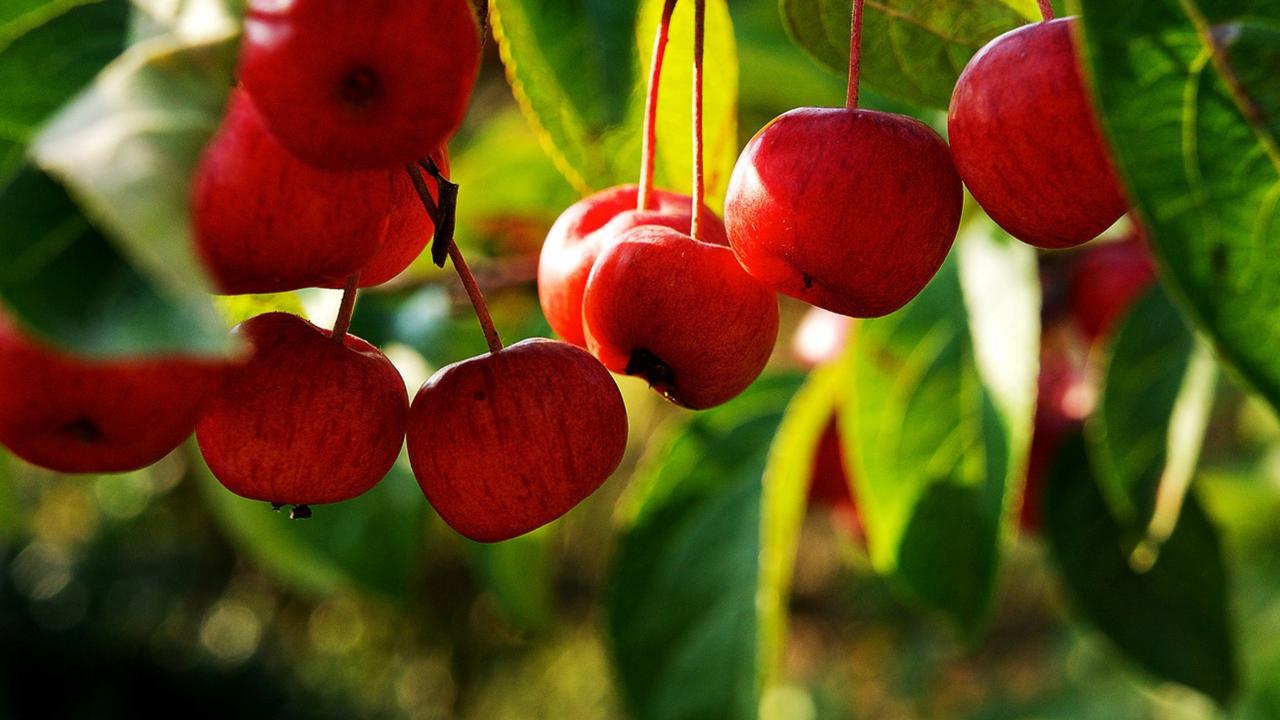 Wallpaper Bunches of apples on a tree branch
