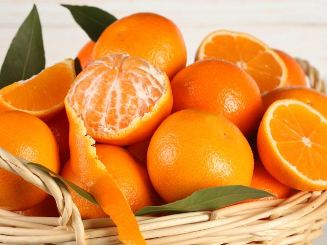 Wallpaper Oranges in a straw basket