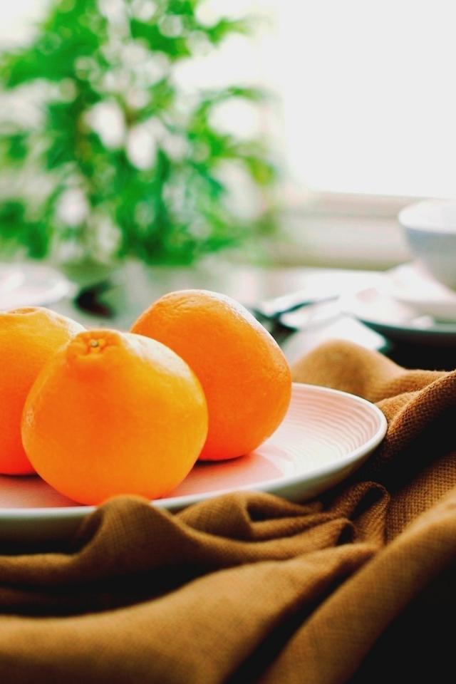 Wallpaper Three oranges on a white plate