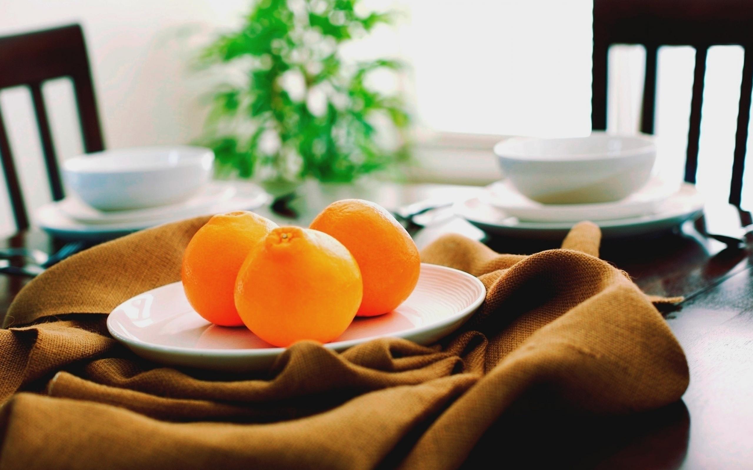 Wallpaper Three oranges on a white plate