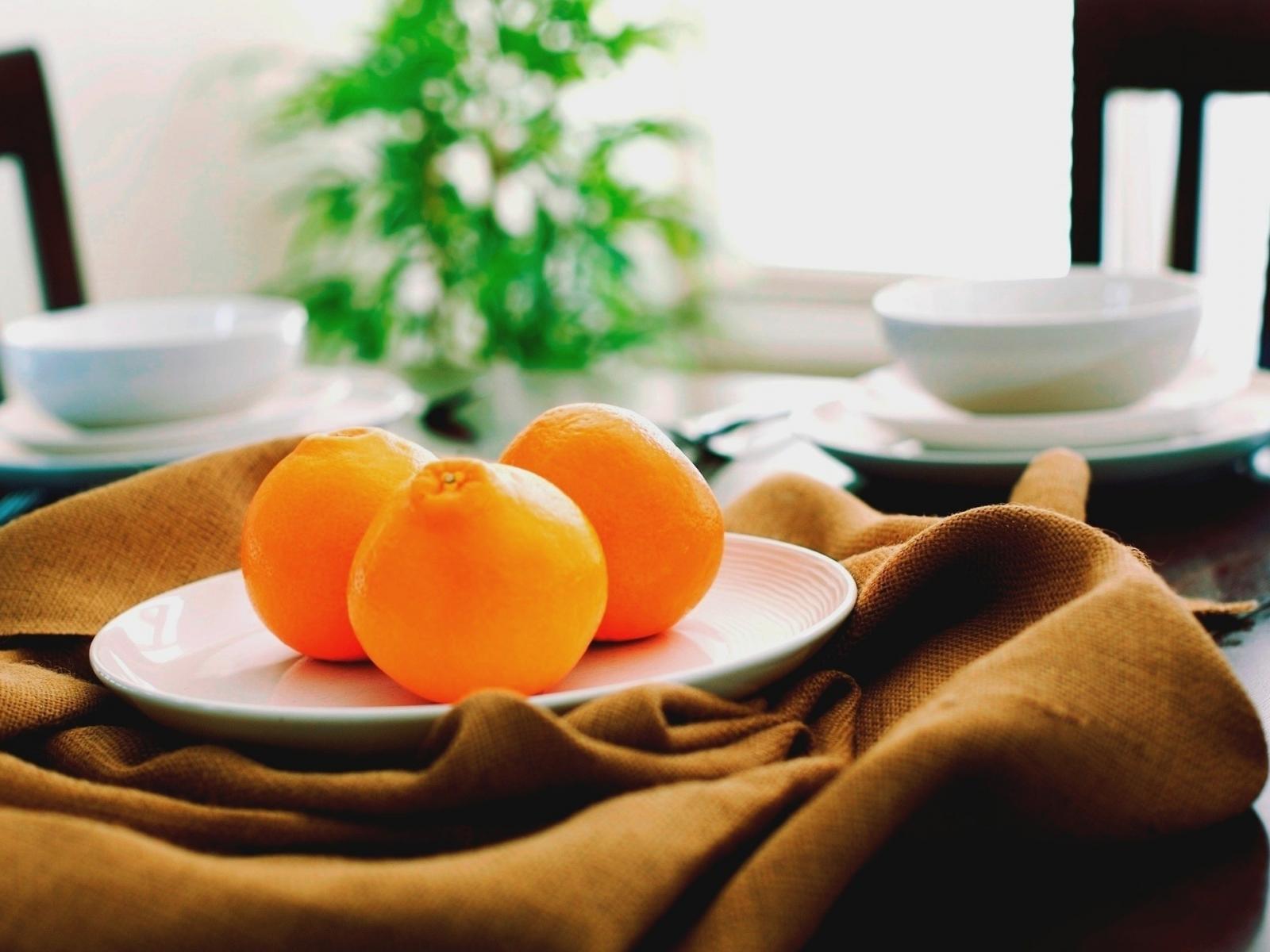 Wallpaper Three oranges on a white plate