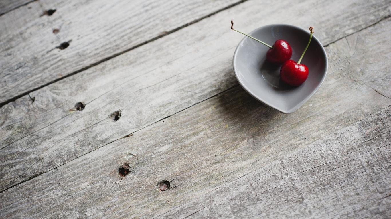 Wallpaper Two red cherries in a ceramic cup