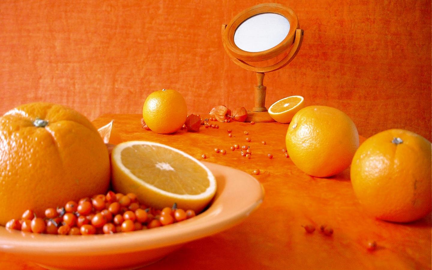 Wallpaper Oranges and sea-buckthorn