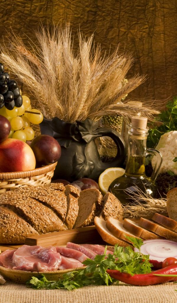 » Wallpaper Bread, Fruit, Mushrooms, meat