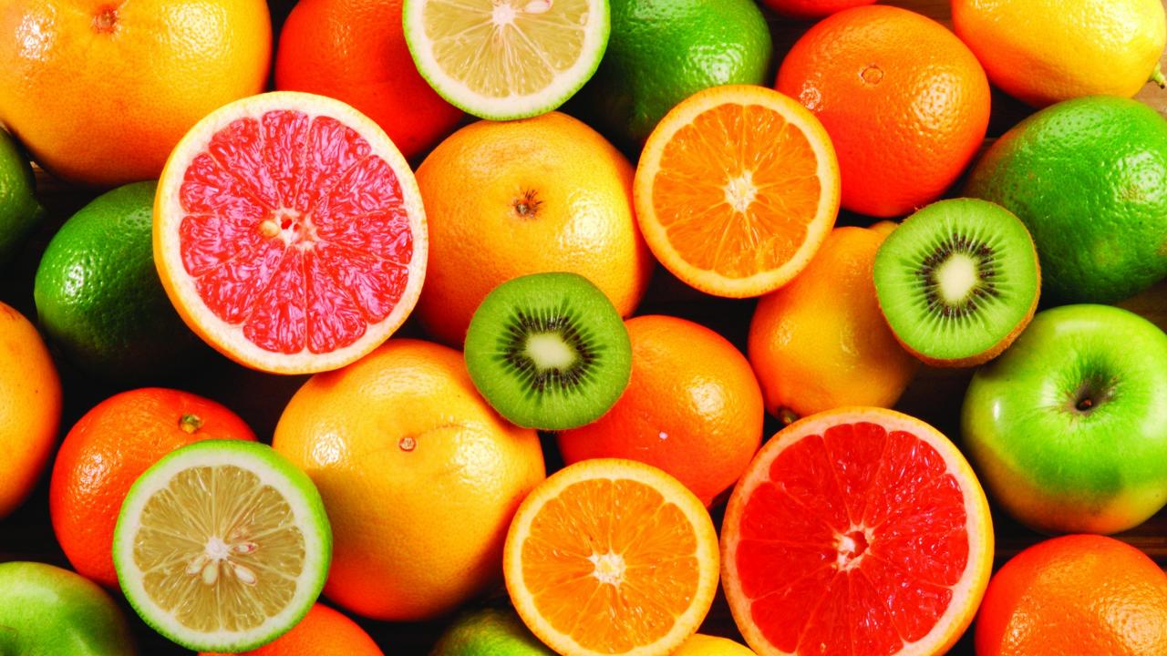 Wallpaper Fruit, Kiwi, Orange, Lemon, Grapefruit