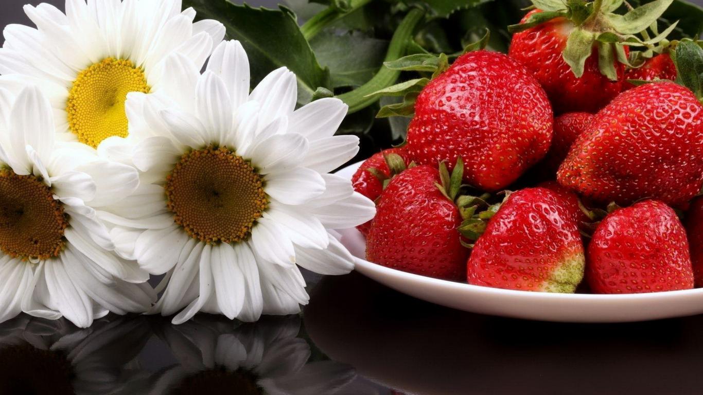 Wallpaper Strawberries and daisies