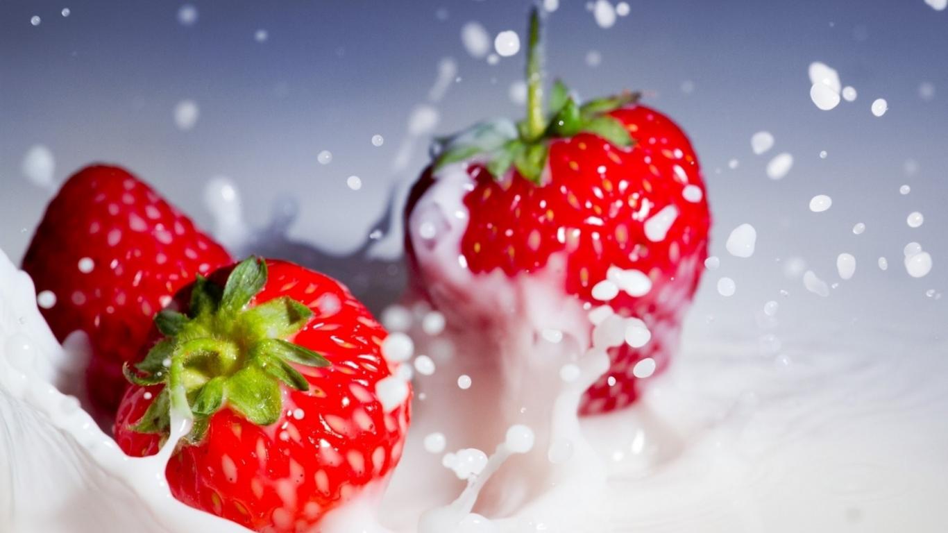 Wallpaper Strawberries with milk