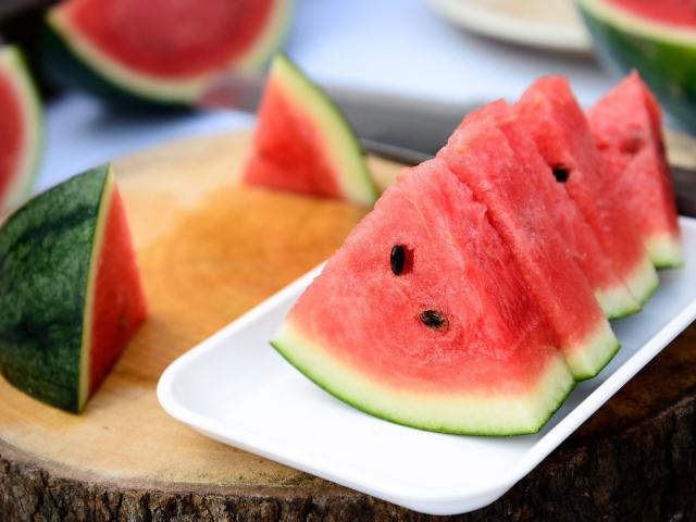 Wallpaper Cut watermelon on a plate