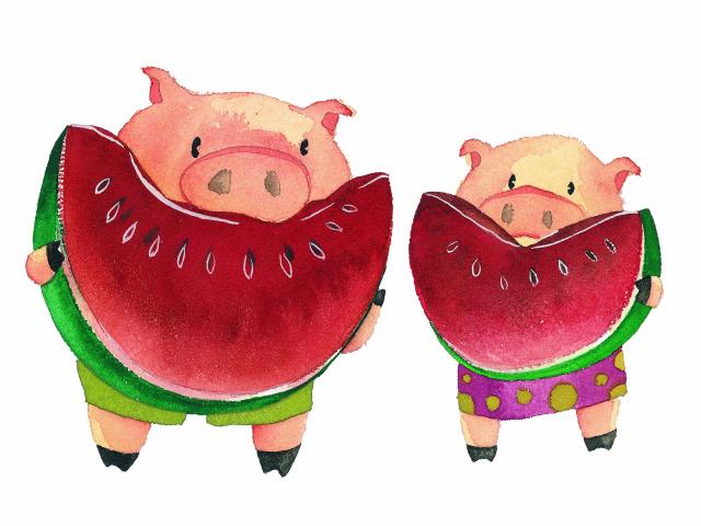 Wallpaper Piglets with watermelons