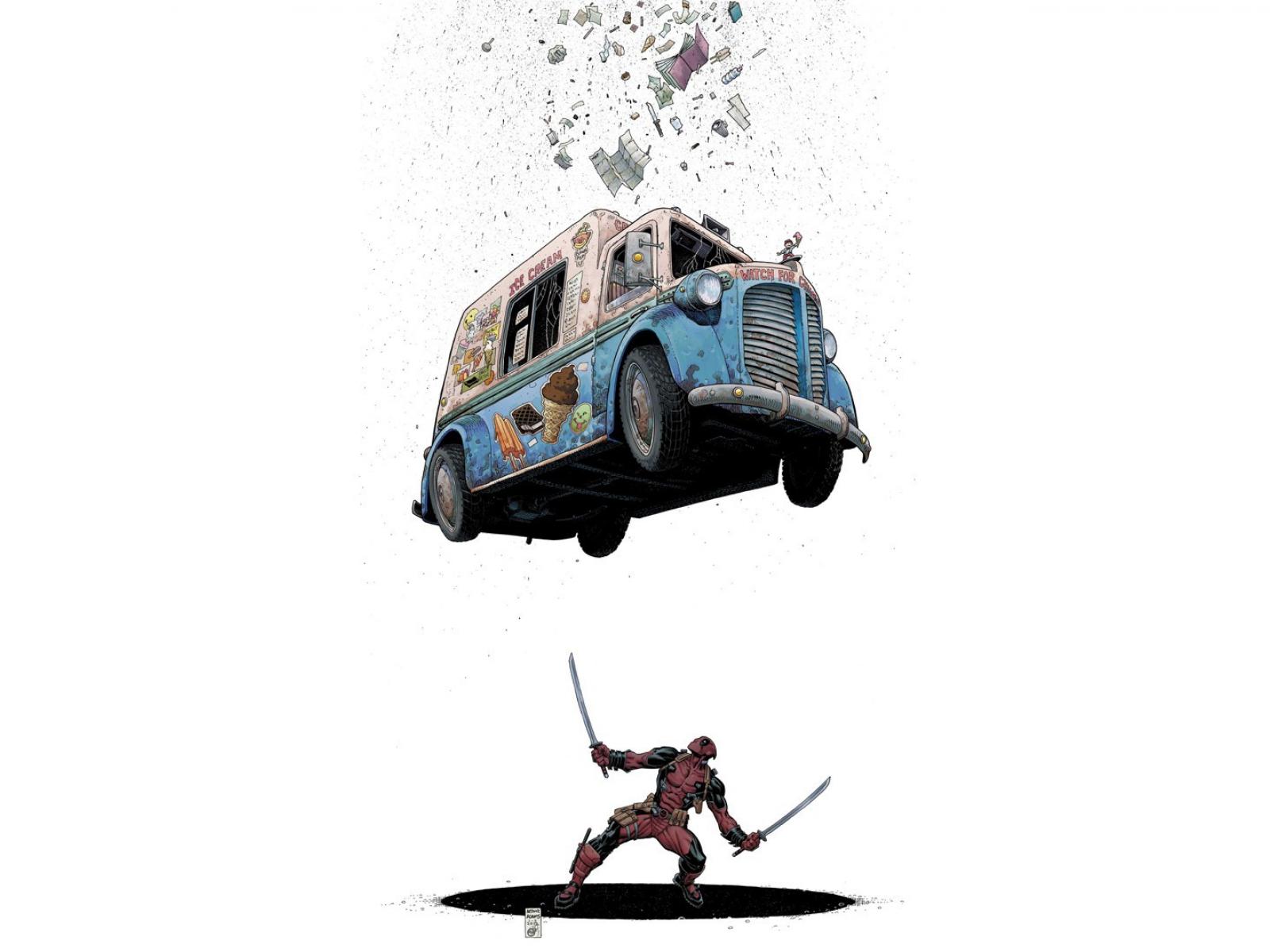 Wallpaper Car falls on Deadpool