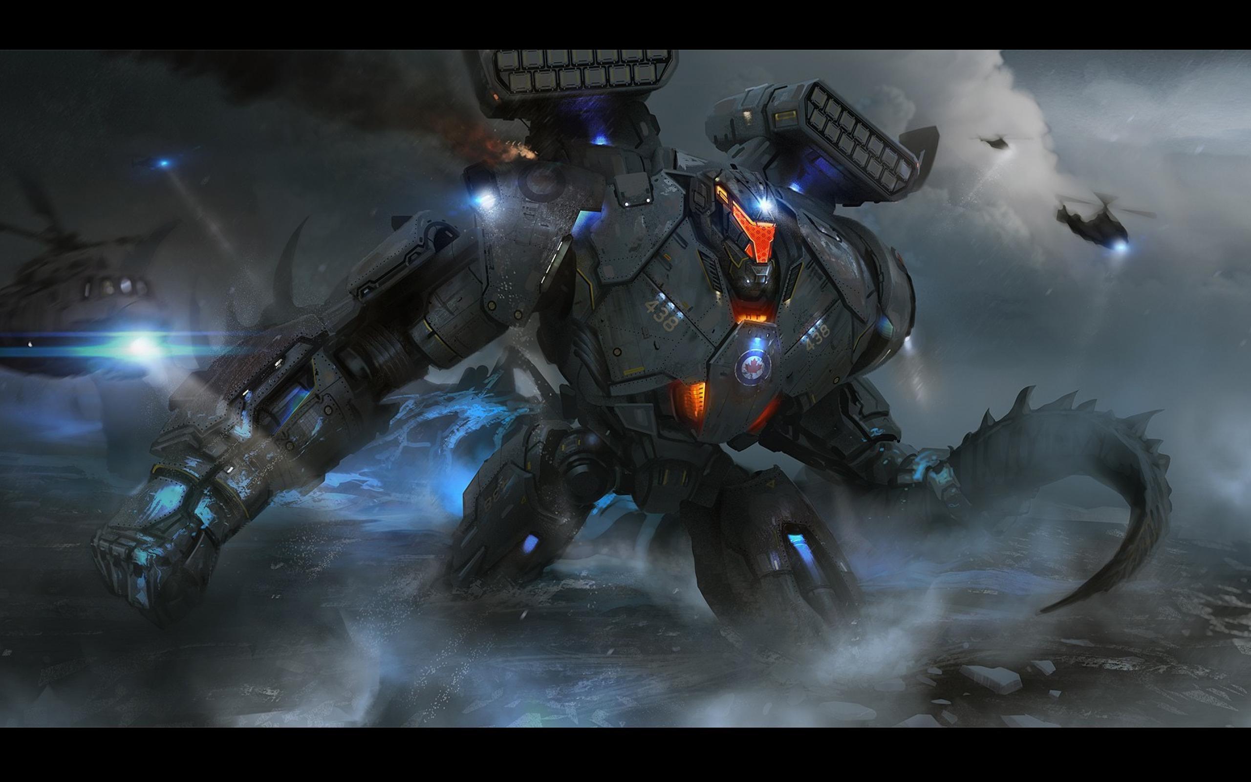 Wallpaper A huge mech robot into the sea
